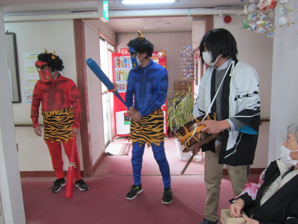 船小屋荘では節分祭を開催致しました。入居者の皆様で豆まきして鬼退治!